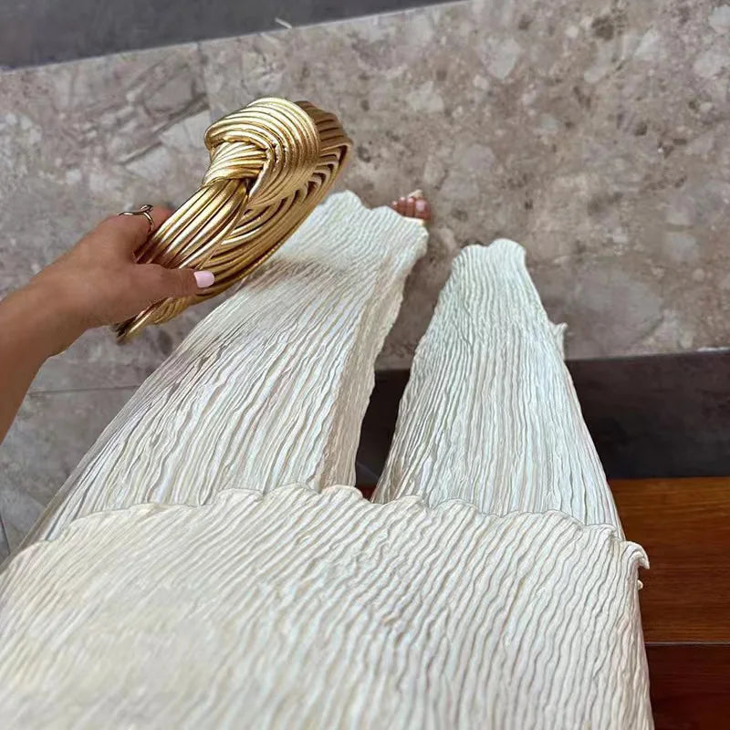 אוברול אלגנטי עם נוכחות – גזרת רגל רחבה, צווארון חצי גבוה וקפלים עדינים שמחמיאים לגוף בדיוק במקום הנכון. נוח במיוחד, נראה מיליון דולר. לוק נקי, מתוחכם ומלא שיק.