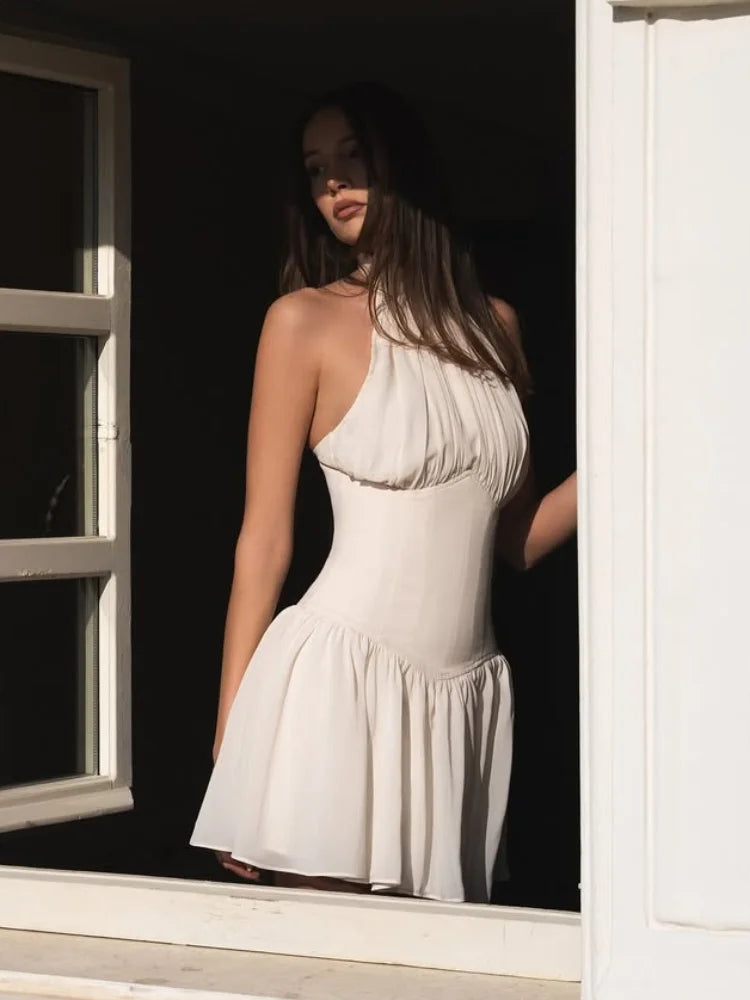 שמלת מיני בגזרת קולר אלגנטית, עם כיווצים עדינים שמוסיפים עניין ומחמיאים לגוף. בד קליל ונעים למגע, גימור נקי וסילואט מחמיא. שילוב מדויק של קלאסה וסטייל.